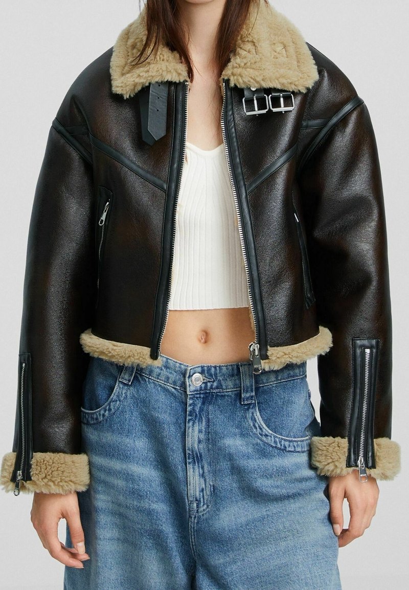 BershkaPre-owned Keinonahkatakki - dark brown