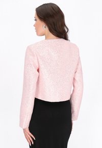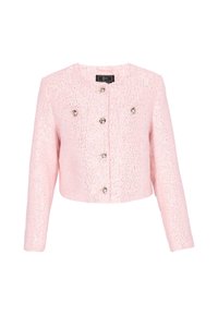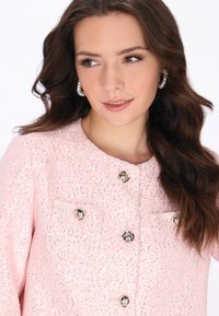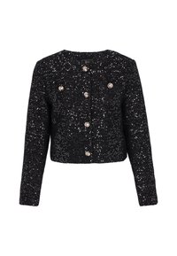 Kohota tapahtumavalmis tyylisi tällä näyttävällä bleiserillä Festive Collection -mallistosta. Suunniteltu säännölliseen istuvuuteen tyylikkäällä lyhennetyllä pituudella, siinä on hienostunut pyöreä kaula-aukko ja pitkät hihat viimeistellyn siluetin luomiseksi. Valmistettu teksturoidusta bouclé-kankaasta, bleiseri on koristeltu kimaltavilla paljeteilla, jotka luovat kiiltävän, huomiota herättävän kuvion. Viimeistelty rintataskuilla ja klassisella yksirivisen napituksen kiinnityksellä, tämä kappale on täydellinen juhlatilaisuuksiin ja erityistapahtumiin, joissa erottuva tyyli on välttämätön.