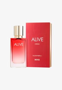 Luotu naisille, jotka eivät pelkää ottaa riskejä ja jotka mielellään poistuvat mukavuusalueeltaan: BOSS Alive Eau de Parfum Intense on voimakas tuoksu, joka heijastaa BOSS-naisen intensiivistä elämäniloa ja voimaa ja kutsuu häntä uskaltamaan vielä enemmän ja tuntemaan itsensä eläväksi. Hienostuneilla vadelmanuoteilla luomus säteilee olfaktorisesti täynnä energiaa, kun taas vetiverin intensiiviset, puiset vivahteet korostavat taitavasti käyttäjän itsevarmuutta. Aistillinen bentsoehartsi jättää jälkiä itseluottamuksesta ja naisellisuudesta ja antaa eau de parfumille sen tunnusomaisen luonteen. Kuin koru, kultainen koriste ympäröi BOSS Alive Eau de Parfum Intense -tuoksun lasipulloa, kun taas vadelman pinkki edustaa BOSS Alive -naisen intohimoista luonnetta.