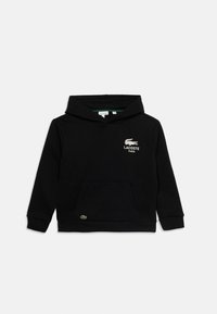 Keltainen huppari kengurulokeroilla, nyöritettävän hupun ja valkoisen Lacosten logon kanssa. Valmistettu pehmeästä kankaasta, jossa on resorit hihansuissa ja helmassa.