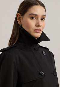 DOUBLE BREASTED COTTON BLEND TRENCH COAT - Trenssi - black