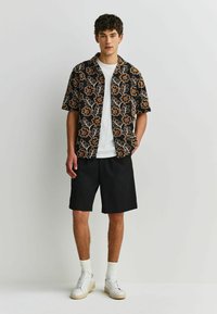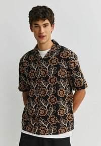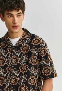 REGULAR FIT - TEXTURED EMBROIDERED FLORAL SHORT SLEEVE SHIRT . - Vapaa-ajan kauluspaita - black