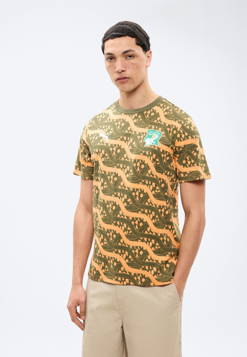 IVORY COAST FIF FTBLCULTURE TEE - Pelipaita - loden green/melon glow