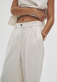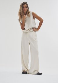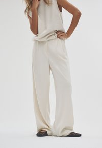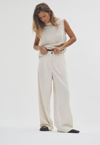 2 PACK WIDE LEG PLEATED - Housut - cream/neutral brown